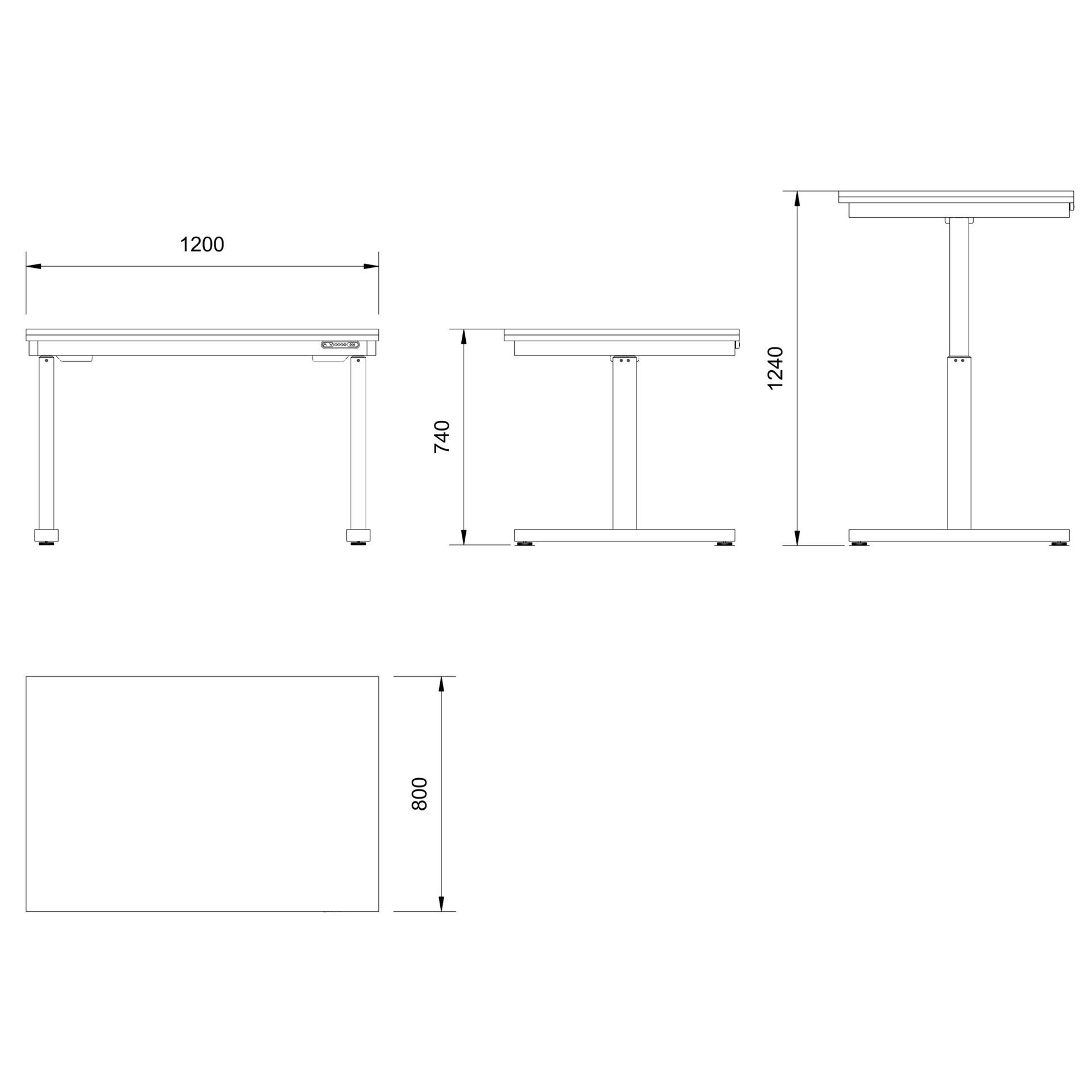 - Elektrisch höhenverstellbar: 740 mm bis 1240 mm