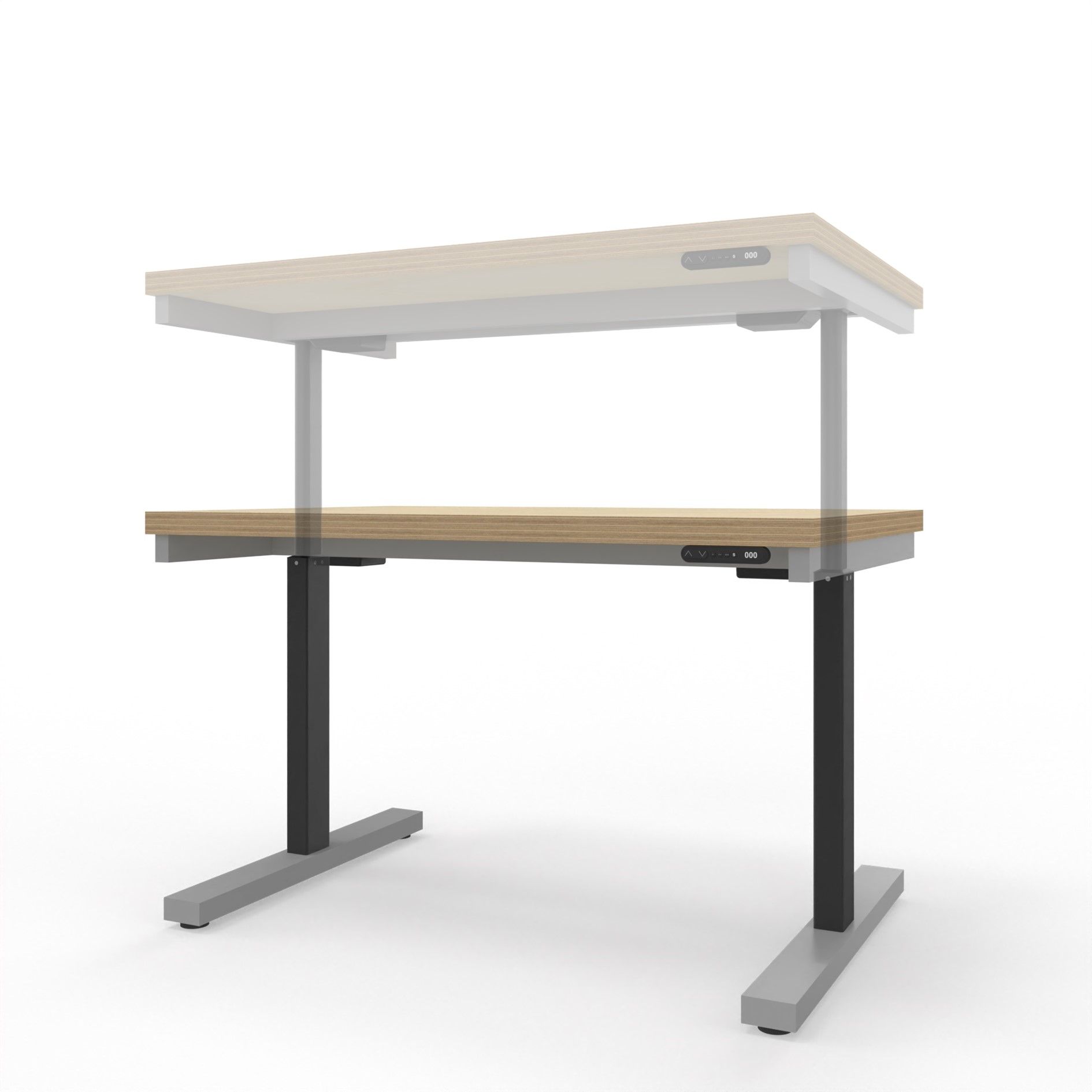 Transformiere deinen maßgefertigten Schreibtisch in einen modernen, elektrisch höhenverstellbaren Arbeitsplatz. Erlebe einen nahtlosen Wechsel zwischen Sitzen und Stehen und genieße mehr Komfort und Flexibilität beim Arbeiten.